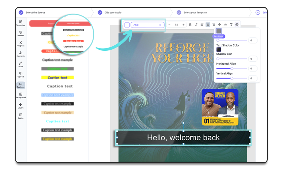 - Every beat, every word—visualized. With Wavveform graphics and progress bars, your content becomes captivating, even at a glance.