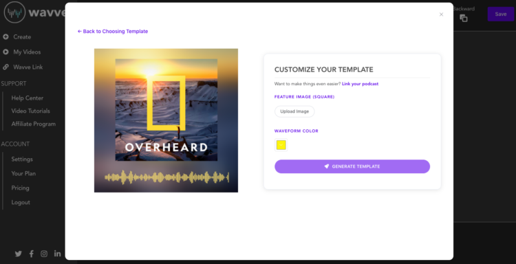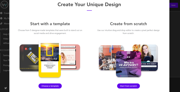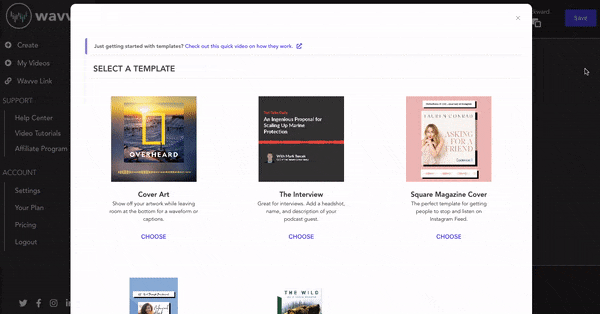 3) On the next page, you’ll be presented with a handful of designs that were specifically made for Wavve and for driving more engagement and more views on social media. Here, you can select whichever template you prefer.