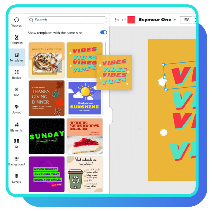 Upload custom images and logos, then drag and drop text and animations into your design using our in-browser editor.