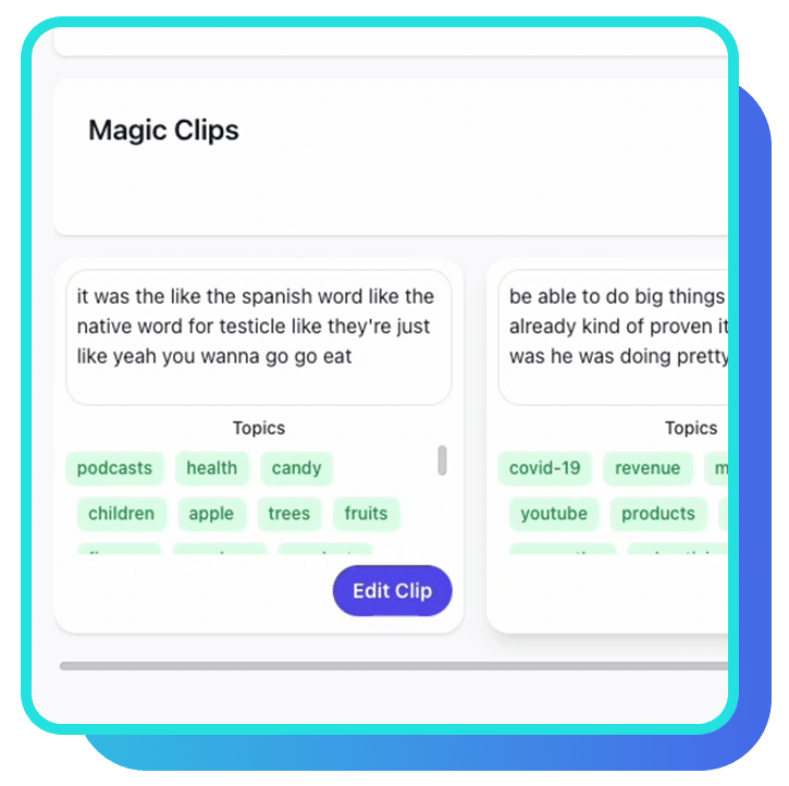Save time with our audio-to-visual artificial intelligence that automatically pinpoints your most appealing audio snippets.